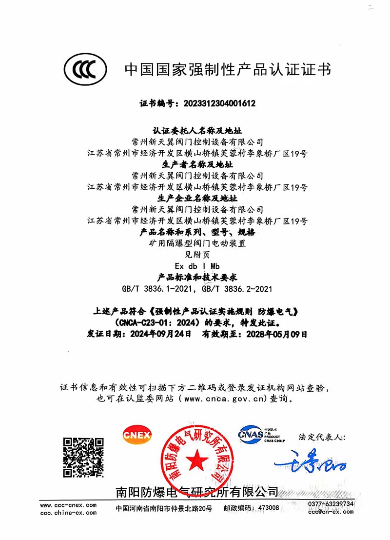 防爆Z10B Z10FB國(guó)家強(qiáng)制性產(chǎn)品認(rèn)證CT4證書(shū)109.1